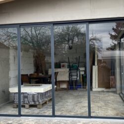 Elegantní bezrámové zasklení s posuvnými panely až 6 dílů do jedné strany. Realizace do moderní dřevěné pergoly, kde investoři požadovali maximální výhled do zahrady bez rušivých profilů. Zasklení bylo provedeno v imitaci kartáčované nerezi, výplně ESG 10 mm čiré sklo.