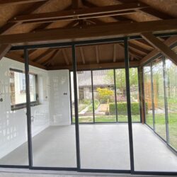 4. Zasklení pergoly v barvě slonové kosti – aby ladilo k přírodnímu dřevu