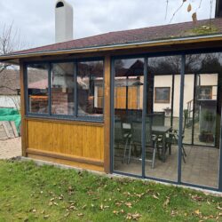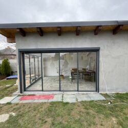 Komentář: Zasklení se skládá ze 3 a 4 posuvných křídel, které lze snadno otevírat. Ideální pro sezónní využití, jednoduché zamykání a pevná konstrukce.