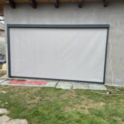 Rámové zasklení doplněné o motorickou screenovou roletu s textilií Serge 600. Na přání zákazníka bylo důležité soukromí a stínění od sousedního domu, zároveň si přál zachovat moderní vzhled.