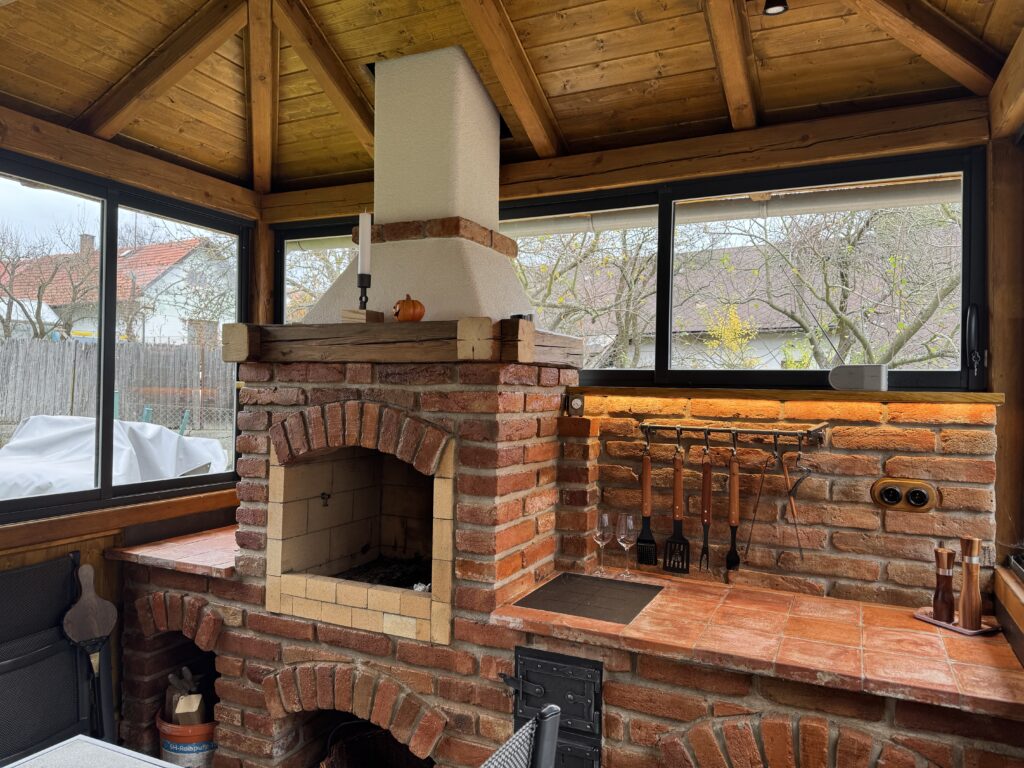 - LED osvětlení nebo infrazářiče umožňují pohodlné užívání kuchyně i ve večerních hodinách nebo na jaře a podzim, kdy je teplota nižší.