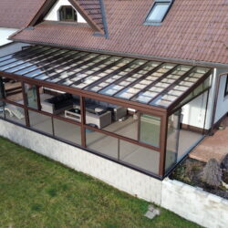 - ☀️ Čiré sklo nebo polykarbonát propouští maximum denního světla (až 90 %) a zachovává průhlednost – vhodné, pokud si přejete prosvětlit přilehlé místnosti jako je obývací pokoj, kuchyně nebo zimní jídelna. Výhled z terasy zůstává ničím nerušený, což přispívá k propojení interiéru s exteriérem.