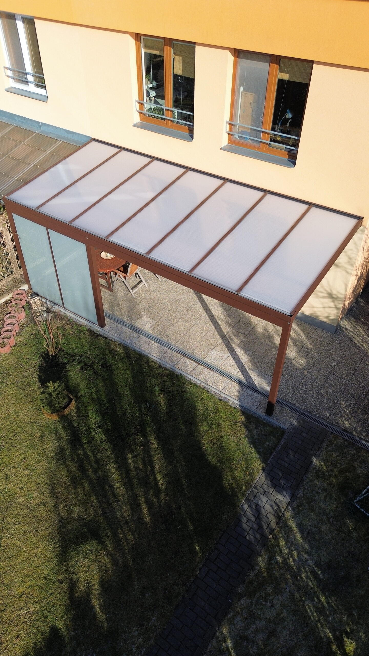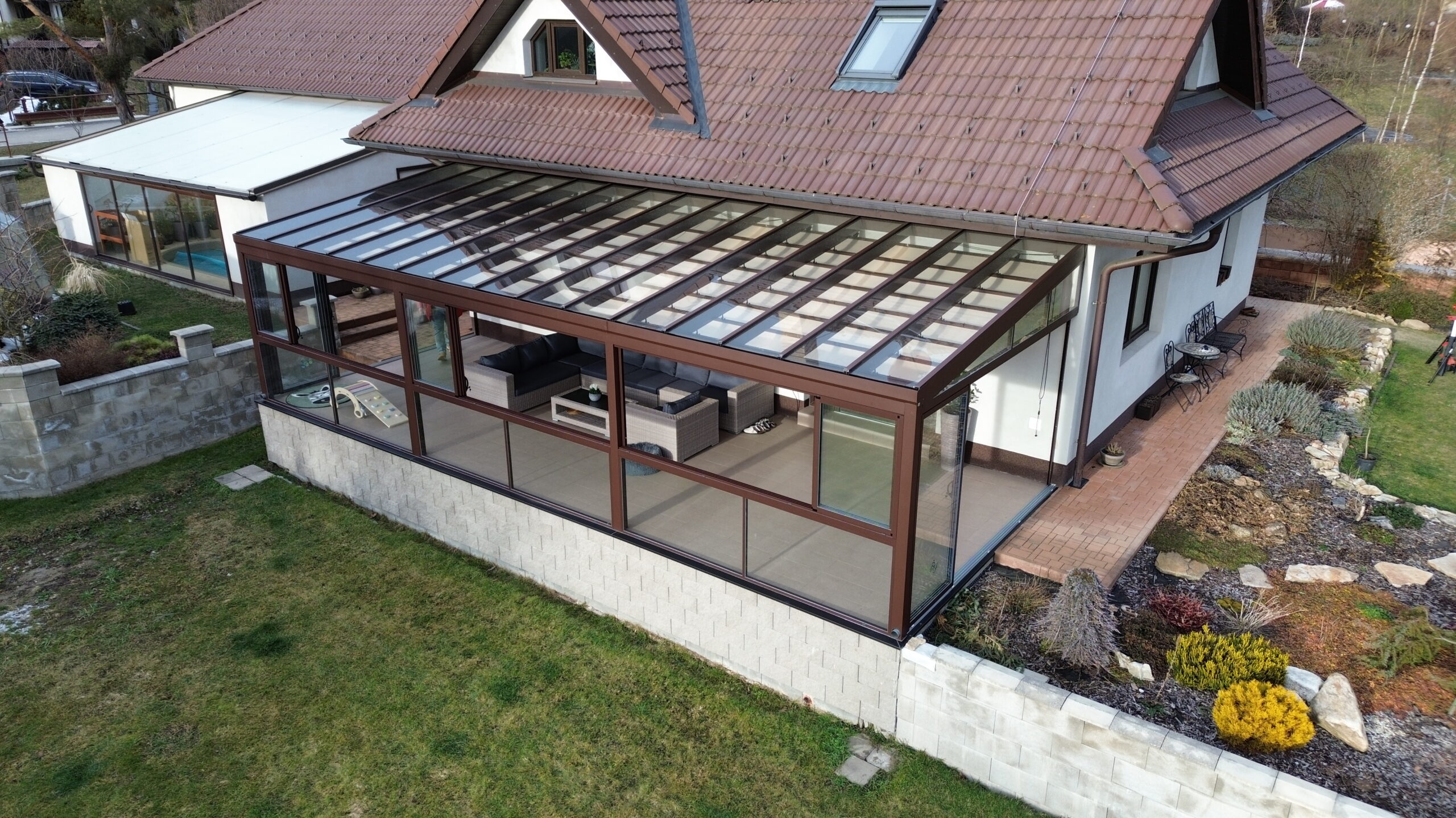 - ☀️ Čiré sklo nebo polykarbonát propouští maximum denního světla (až 90 %) a zachovává průhlednost – vhodné, pokud si přejete prosvětlit přilehlé místnosti jako je obývací pokoj, kuchyně nebo zimní jídelna. Výhled z terasy zůstává ničím nerušený, což přispívá k propojení interiéru s exteriérem.