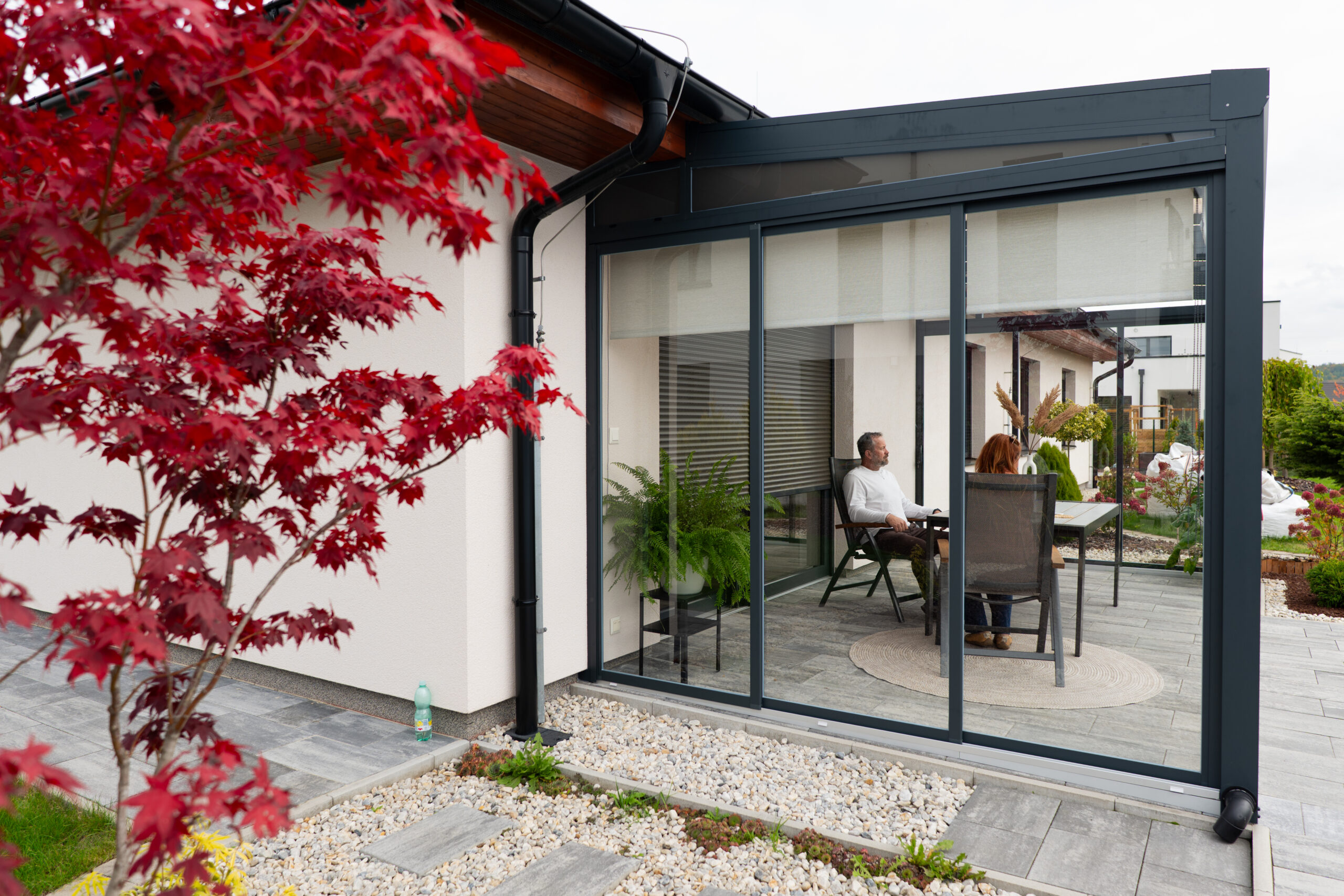 Po dokončení realizace se prostor za domem proměnil k nepoznání. Získali chráněné místo, které mohou využívat po celý rok – ať už prší, fouká vítr nebo svítí slunce. Zimní zahrada se stala centrem rodinného života:
