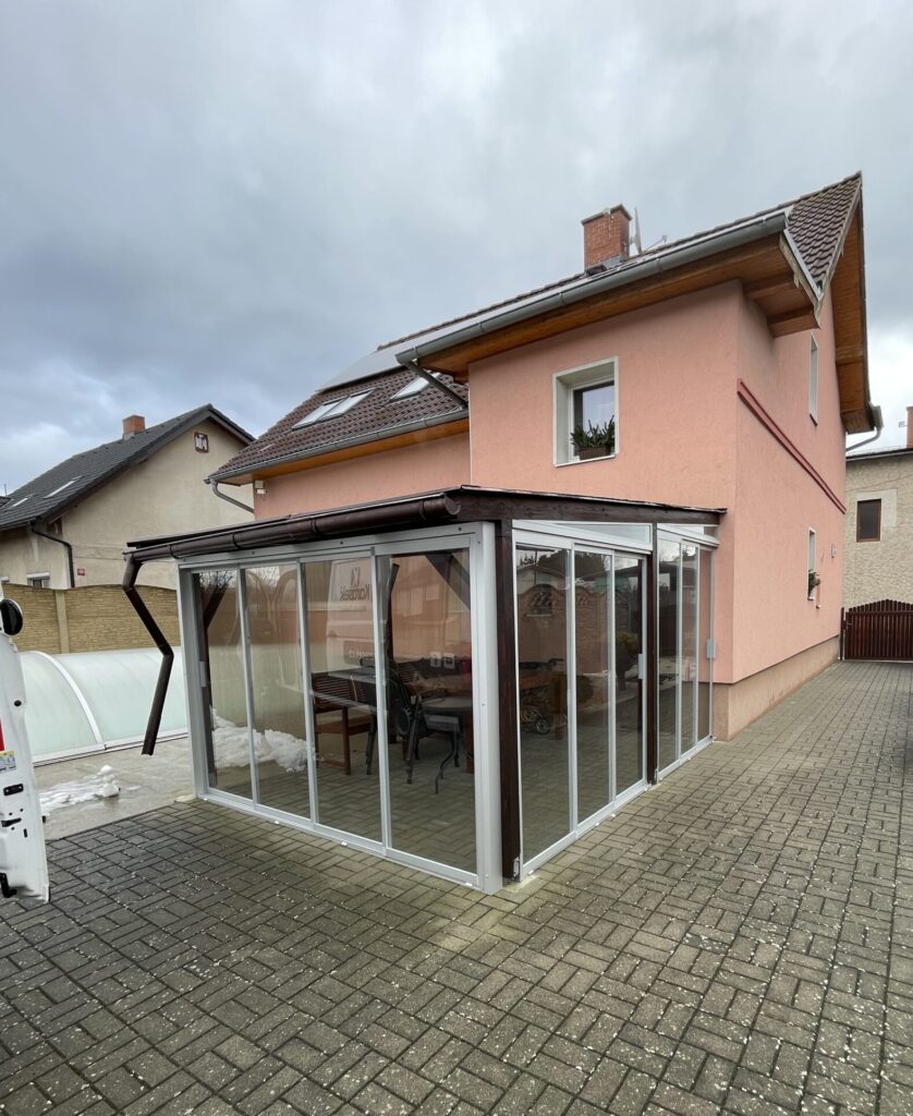 Zákazník měl již jednu stranu pergoly zasklenou svépomocí s PCD výplní. Zbytek pergoly chtěl zákazník mít možnost otevírat, a proto poptal naši firmu. Po krátké e-mailové komunikaci, kde jsme zákazníkovi nastínili navrhované řešení včetně předběžné cenové nabídky, jsme postoupili do fáze zaměření. Na zaměření jsme předvedli, jak systém funguje a vypadá. Výstupem z naší návštěvy je výrobní cenová nabídka a výrobní výkres zasklení. Po podpisu smlouvy a zadání do výroby zbývala už jen montáž ve smluveném termínu a předání hotového díla zákazníkovi.